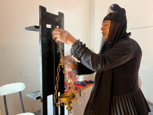 La propuesta escénica adopta la forma de un trabajo ritual performativo con dos personajes: Juan Bautista, quien prepara el ambiente ceremonial, y la señora Lucrecia, madre que pierde a sus hijos en la tragedia y que representa simbólicamente a todas las madres de las víctimas. La obra convoca al público a participar de un acto de memoria inspirado en el ritual de nueve días que se realiza en la República Dominicana, trasladado simbólicamente a 2026, cuando se cumplen nueve meses del suceso.