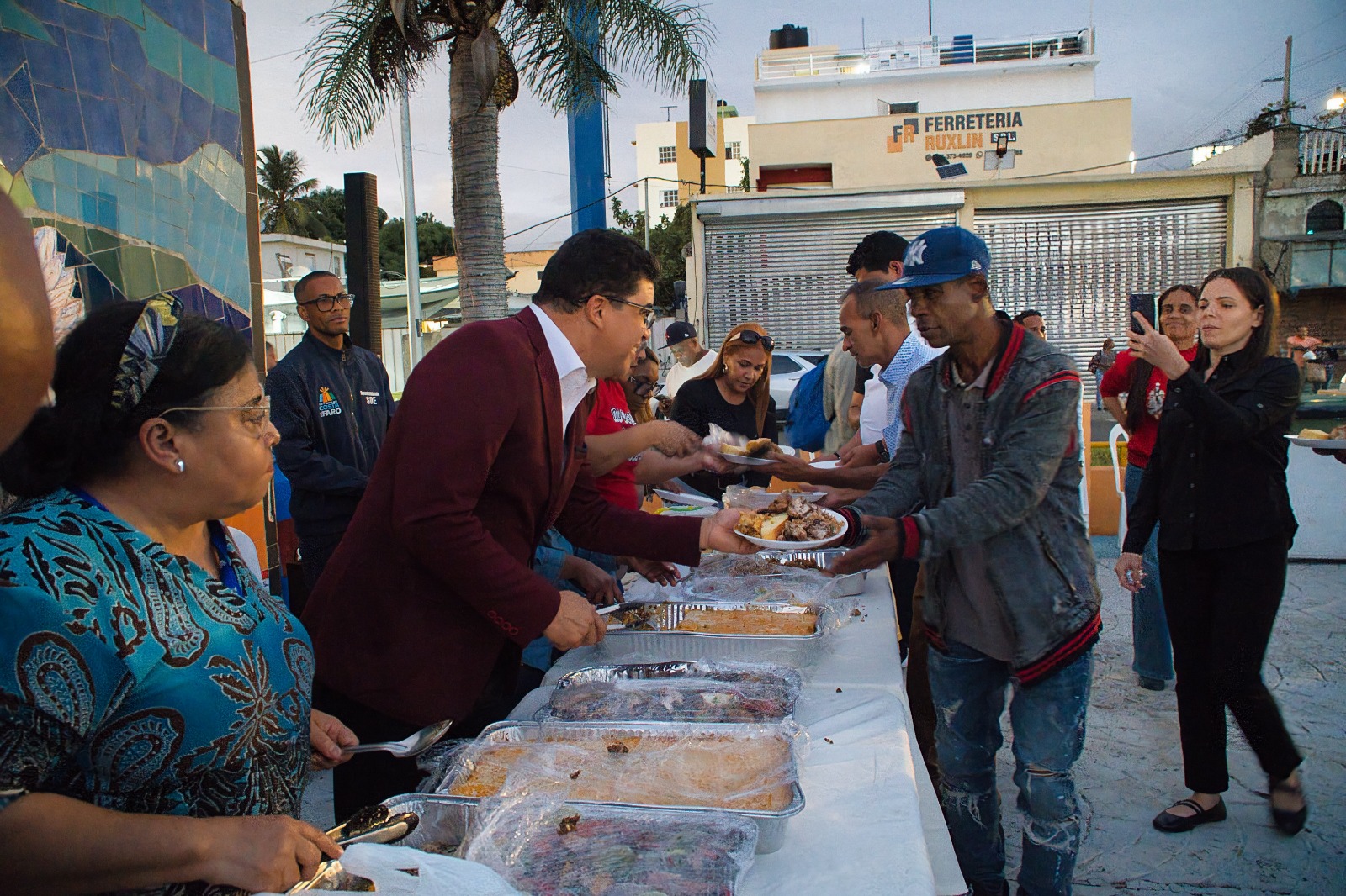 Acompañado de su esposa, Evelin García de Astacio, el alcalde conversó de manera cercana con los asistentes, escuchando sus historias y compartiendo la mesa en un ambiente de respeto y humanidad. Durante la cena, se distribuyeron platos típicos de la Nochebuena dominicana, reafirmando el valor de compartir y la importancia de no dejar a nadie fuera en fechas tan significativas para las familias.