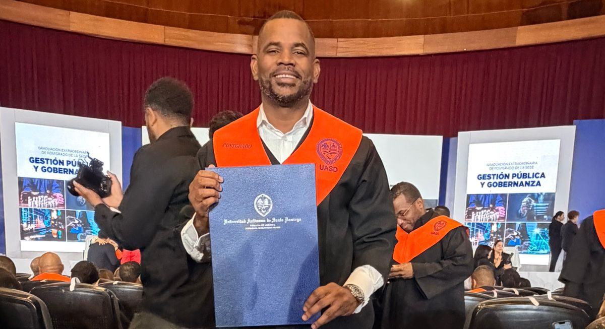 SANTO DOMINGO.– El periodista y abogado Daurin Muñoz, mejor conocido como «Sueldo Cebolla», se graduó de master en Gestión Pública y Gobernanza mención Innovación y Transformación Digital, en la universidad Autónoma de Santo Domingo (UASD), en una ceremonia encabezada por el presidente Luis Abinader.
