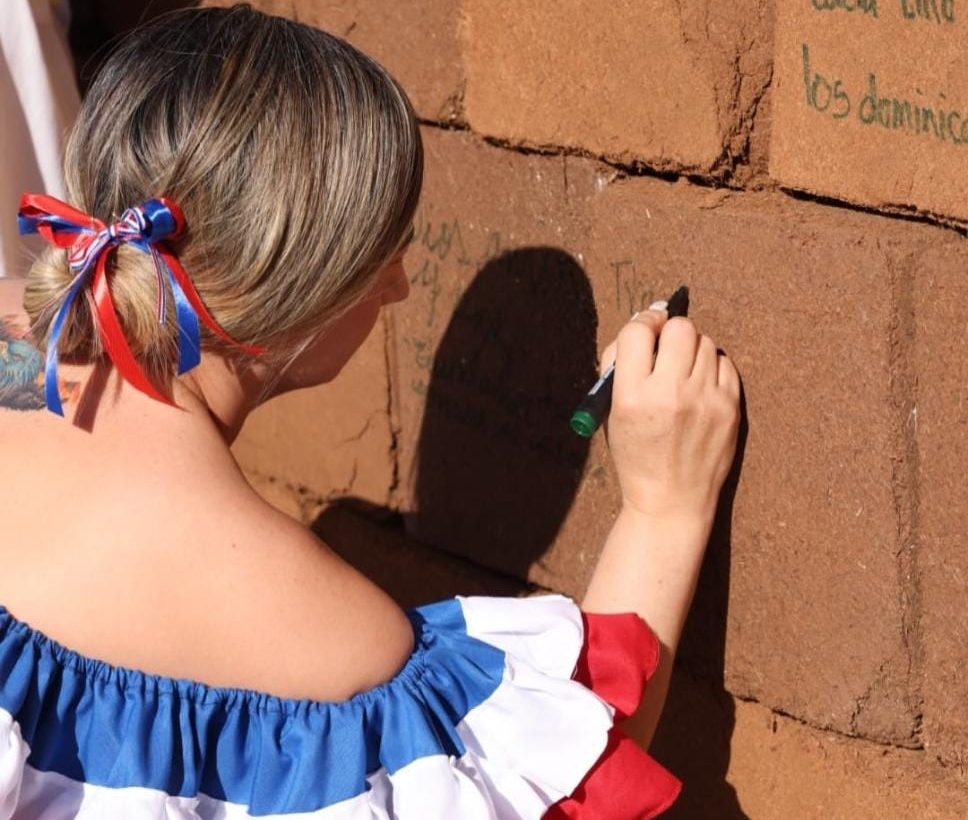 Los mensajes fueron escritos sobre un gran muro construido con materiales biodegradables, concebido como un símbolo de la huella positiva que cada persona puede dejar en la sociedad y en la naturaleza.