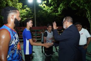 Finalmente, el doctor Guzmán se reunió con jóvenes deportistas de baloncesto del Club Deportivo y Cultural Charles de Gaulle, en el sector Juan Pablo Duarte, donde conoció las necesidades y dio inicio a las evaluaciones de las condiciones en las que se encuentra la cancha donde practican.