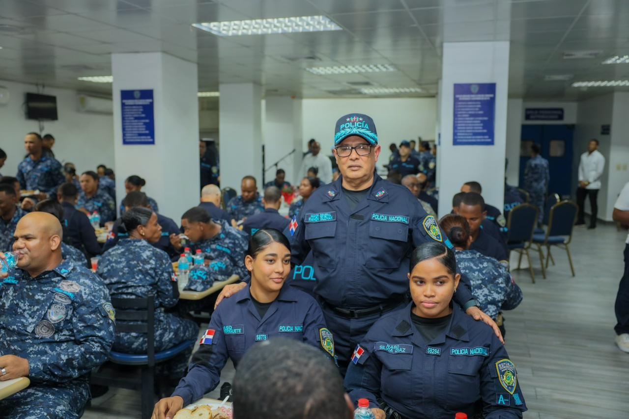 SANTO DOMINGO.- En el marco de la conmemoración de la Nochebuena y la Navidad, fechas que evocan unión, esperanza, sacrificio y amor al prójimo, el director general de la Policía Nacional, mayor general Ramón Antonio Guzmán Peralta, junto al vicealmirante Juan Bienvenido Crisóstomo Martínez, comandante general de la Armada de República Dominicana (ARD), encabezaron la tradicional cena de Nochebuena con agentes policiales en el comedor del Palacio de la Policía Nacional.