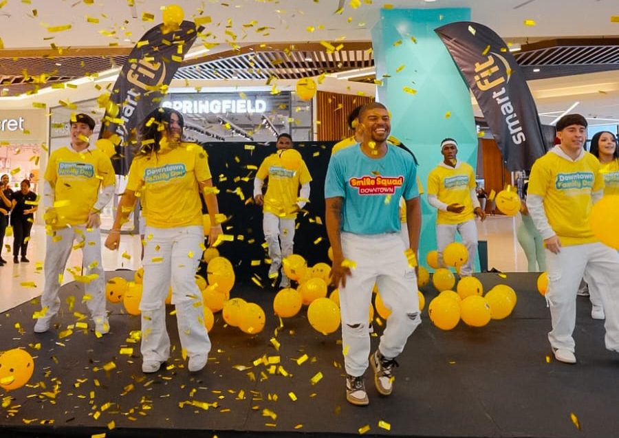 La actividad incluyó una agenda activa que comenzó con una sesión de baile a cargo del equipo de Smart Fit, donde todos los asistentes se unieron al ritmo de las coreografías. La sorpresa llegó con un flashmob en el atrio central, que cautivó a los participantes y visitantes de la plaza esa tarde. Además, se realizaron rifas por parte de los patrocinadores, culminando con un brindis y un ambiente festivo durante casi dos horas, que concluyó con una nube de globos amarillos sonrientes, que arropó a los presentes como un gran cierre que conectó con la alegría del momento.