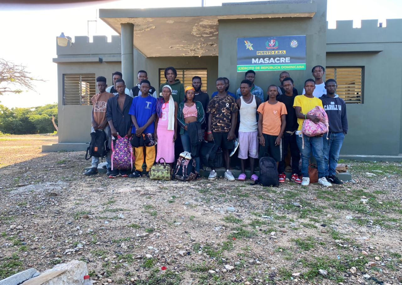 En un primer operativo, soldados adscritos al puesto de Masacre, perteneciente al 10mo. Batallón de Infantería, interceptaron a diecinueve (19) extranjeros, entre ellos quince (15) hombres, dos (2) mujeres y dos (2) menores de edad, quienes intentaban ingresar a territorio dominicano de manera irregular desde Haití.