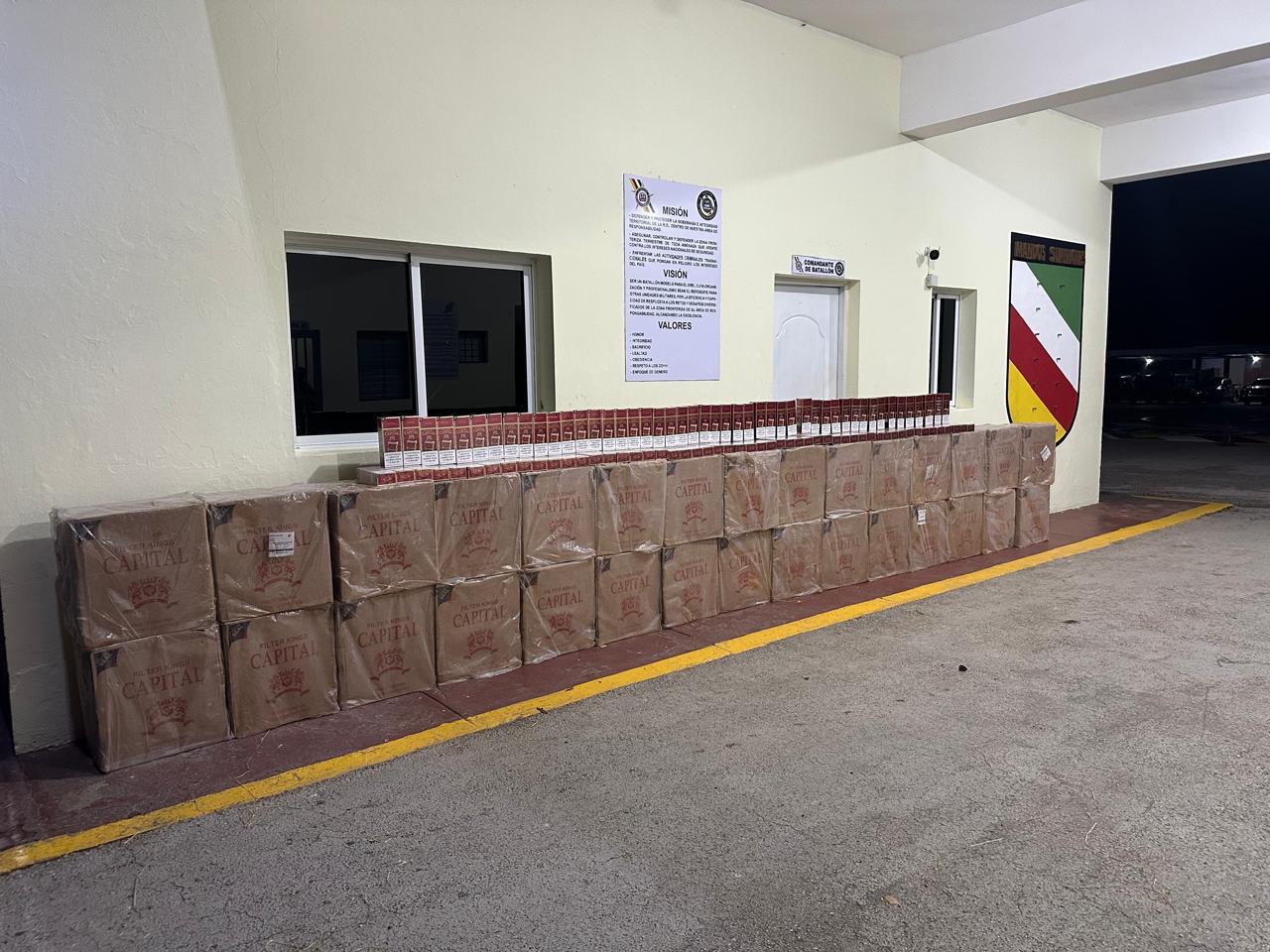 Los mulos retenidos transportaban treinta y dos (32) cajas de cigarrillos marca Capital, cada una con cincuenta paquetes de diez cajetillas y veinte unidades por cajetilla, totalizando las 320 mil unidades ocupadas.