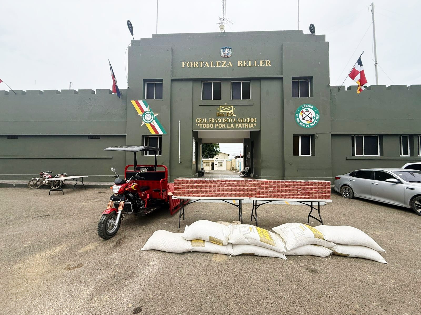 Dajabón. – Un contrabando de 98,600 unidades de cigarrillos fue ocupado por miembros del Ejército de República Dominicana, destacados en el Puesto de Chequeo Militar El Vico, en una motocicleta de tres ruedas interceptada en Dajabón.
