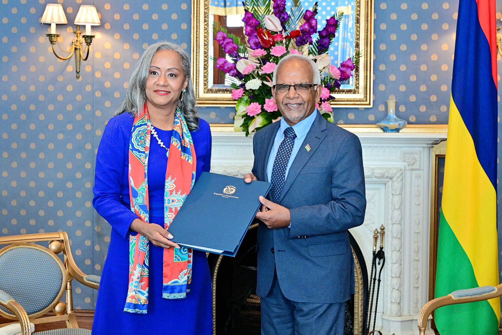 Port Louis, Mauricio.— El 15 de octubre de 2025, la Embajadora Erika Álvarez Rodríguez presentó, en una ceremonia oficial celebrada en la Casa de Gobierno, las Cartas Credenciales que la acreditan como Embajadora Extraordinaria y Plenipotenciaria de la República Dominicana ante la República de Mauricio, con sede en Pretoria, ante S.E. el Sr. Dharambeer Gokhool, Presidente de la República de Mauricio, convirtiéndose en la primera mujer dominicana acreditada en ese país.