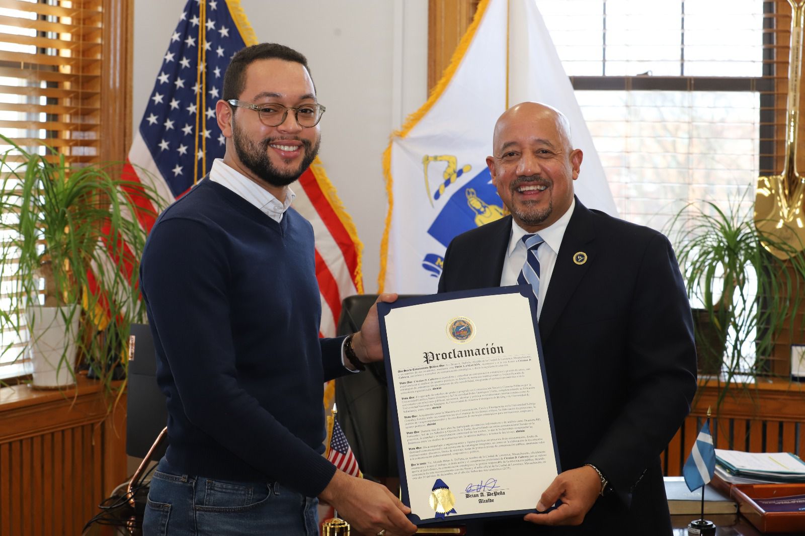 El alcalde de Lawrence, Brian De Peña, resaltó la capacidad de Cabrera para comprender el periodismo como un espacio de servicio público y una herramienta para fortalecer la democracia y hermandad de los pueblos.