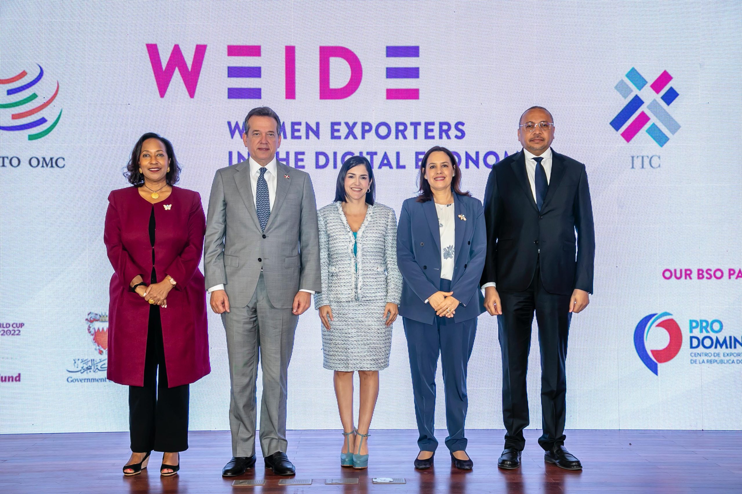 SANTO DOMINGO.- La Secretaría de la Organización Mundial del Comercio (OMC) representada por Johanna Hill, Directora General Adjunta; y el Centro de Comercio Internacional (ITC); representado por Pamela Coke-Hamilton, Directora Ejecutiva, en alianza con el Centro de Exportación e Inversión de la República Dominicana (ProDominicana), representado por su Directora Ejecutiva, Biviana Riveiro Disla, con la presencia del Ministro Victor Bisonó, Ministro de Industria Comercio y Mipypmes (MICM), presentaron oficialmente el Fondo para Mujeres Exportadoras en la Economía Digital (WEIDE, por sus siglas en inglés) en República Dominicana con el objetivo de incrementar la participación femenina dominicana en el comercio internacional.