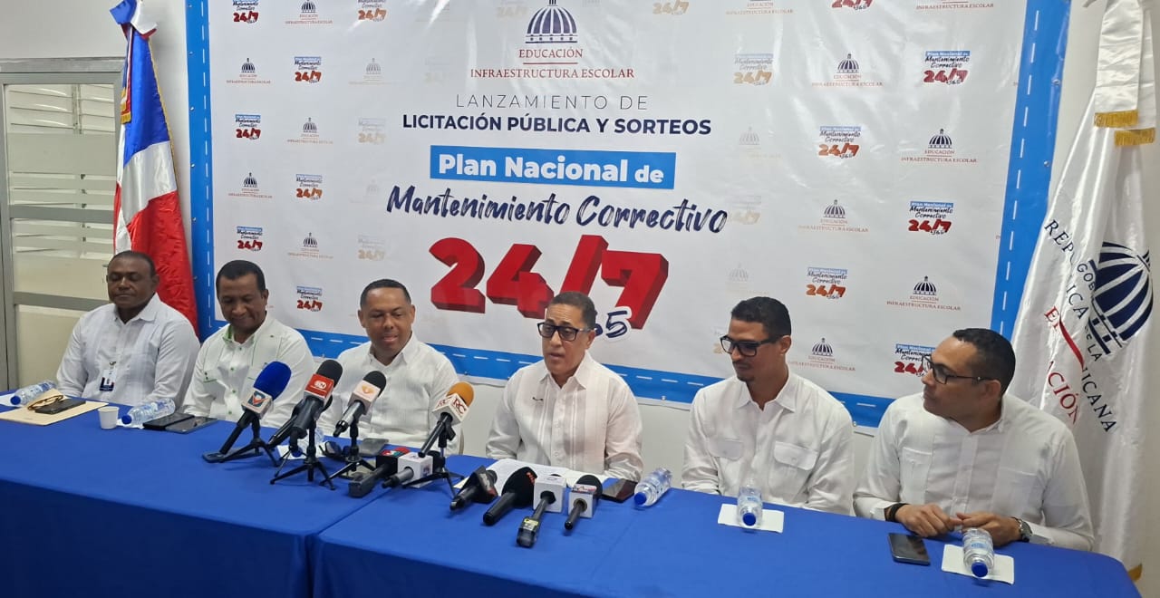 “Hoy anunciamos al país y principalmente a la comunidad educativa, la puesta en marcha del Plan de Mantenimiento Correctivo 24/7-365 y el lanzamiento de un gran proceso de licitación y de sorteos, para intervenir 490 planteles escolares con mantenimientos correctivos, que hemos identificado como los más prioritarios, y que debemos darle respuesta como Gobierno. Estos son pasos y acciones concretas por instrucciones de nuestro señor presidente Luis Abinader y con el apoyo del Ministro de Educación, Luis Miguel De Camps, para responder a las necesidades más urgentes en materia de infraestructura escolar”, subrayó el funcionario.