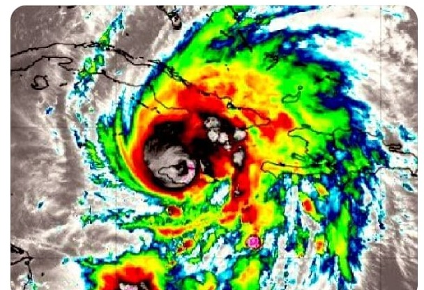 INTERNACIONAL.-El huracán Melissa disminuyó a categoría 4 y con vientos sostenidos de 233 km/h, ya se desplaza sobre el mar al norte de Jamaica.
