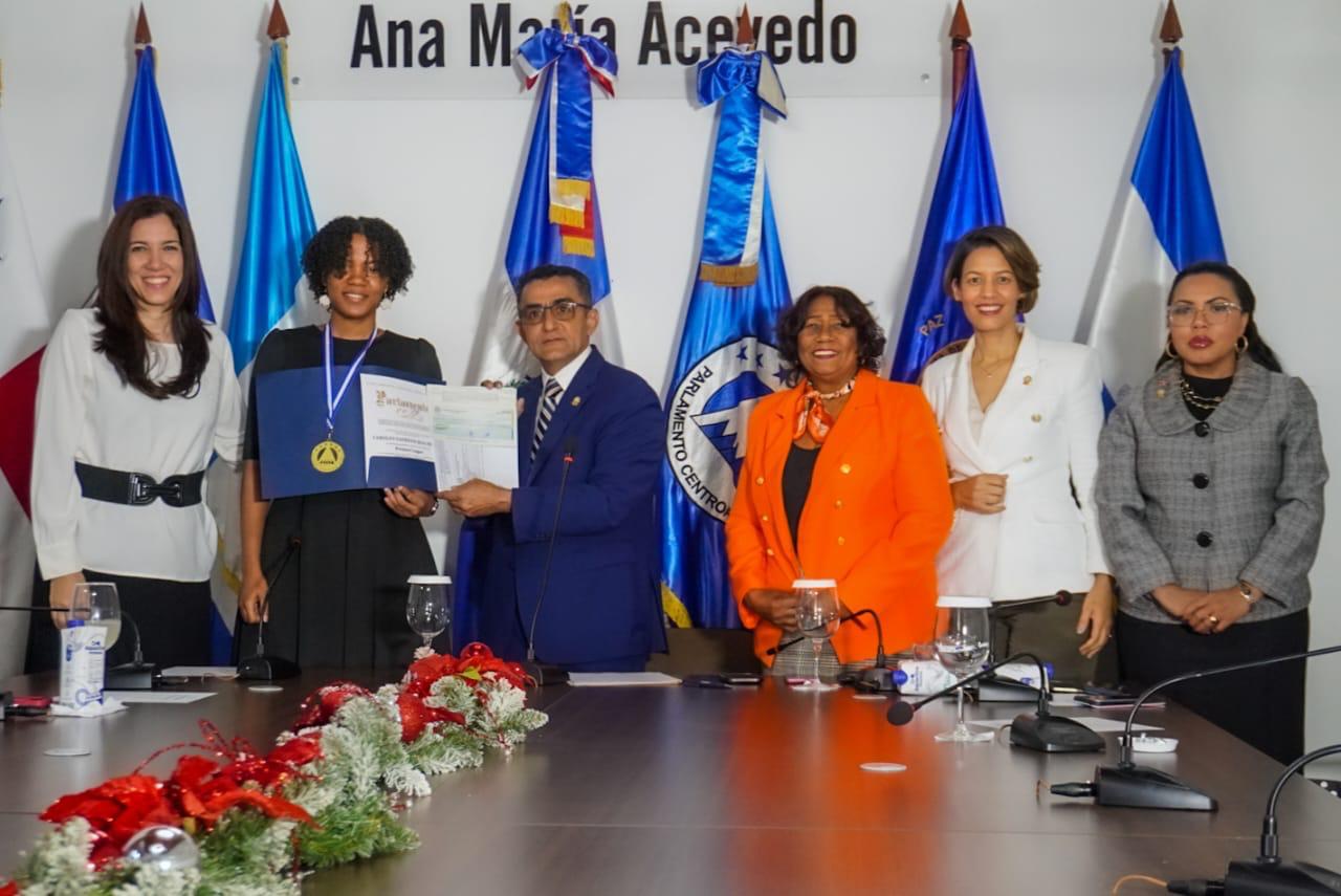Carolyn Roa Pérez recibió un certificado, una medalla y un premio en metálico como parte de su reconocimiento, simbolizando el compromiso del PARLACEN con el impulso a la creatividad y la integración cultural en los países del Sistema de la Integración Centroamericana (SICA).
