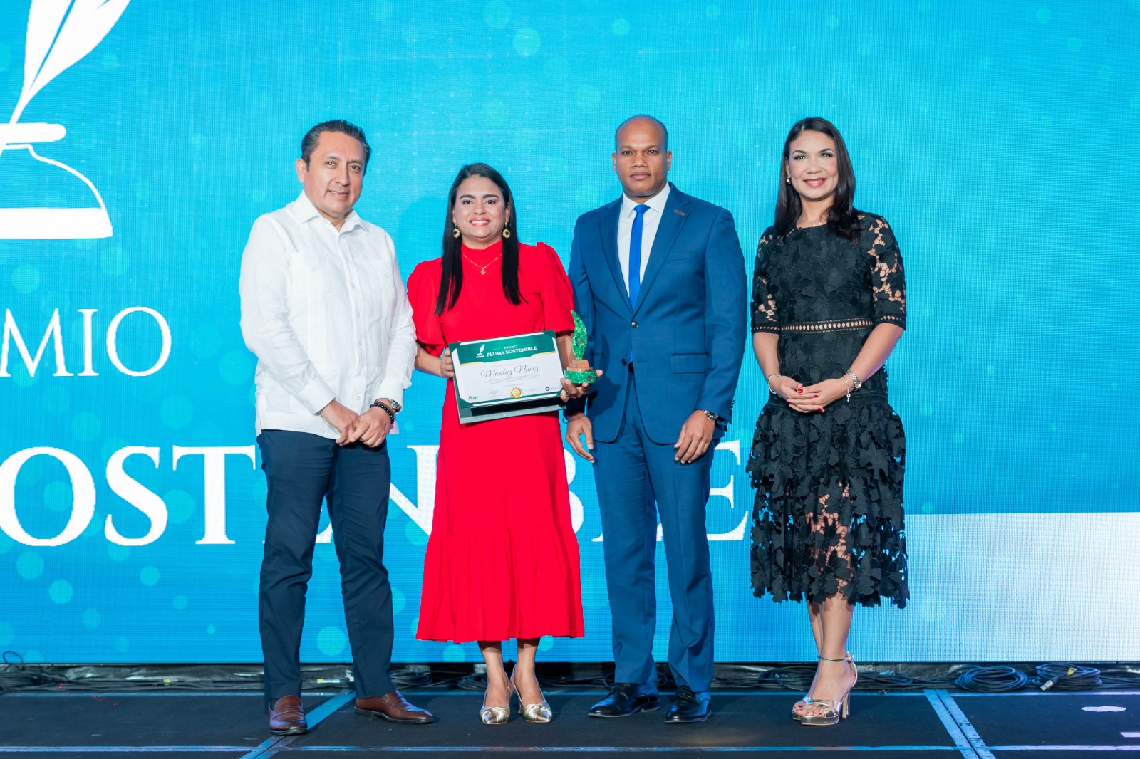 SANTO DOMINGO.- La periodista de Noticentro , Mariluz Núñez Peña, fue reconocida con el prestigioso premio “Pluma Sostenible” 2025, otorgado por Industrias San Miguel en alianza con el Centro de Análisis y Estudio de la Comunicación (Caesco), por su destacado trabajo periodístico sobre el daño que causa el uso excesivo de la tecnología en niños y adolescentes, ubicado en la categoría Salud y Bienestar.