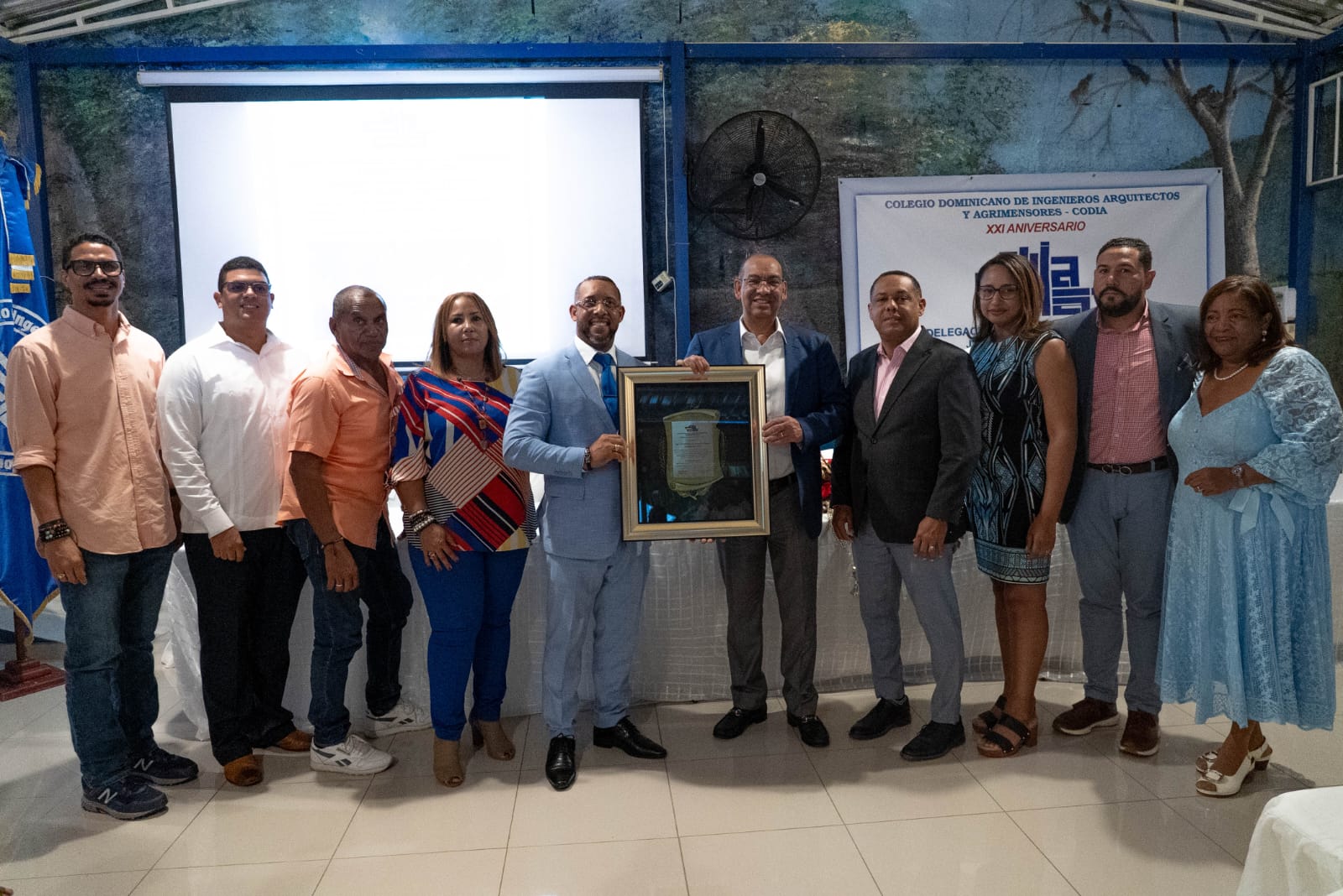 Durante el encuentro, el ingeniero Deligne Ascención recibió un reconocimiento del Codia por su manejo ético y aportes al gremio. El reconocimiento fue entre por el Jeudi Rubio, presidente, del Codia, Delegación provincial de Santo Domingo, y por presidente a nivel nacional, Enrique Rosario García. Entre otros directivos.