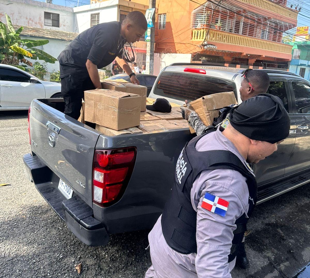 Durante el primer caso, en seguimiento a la denuncia interpuesta el 24 de septiembre de 2025 por una ciudadana, sobre la compra de 428 sacos de harina y 1,500 cajas de aceite con cheques sin fondos o de cuentas cerradas, una investigación de este departamento permitió la recuperación parcial de la mercancía y la detención de los presuntos responsables.