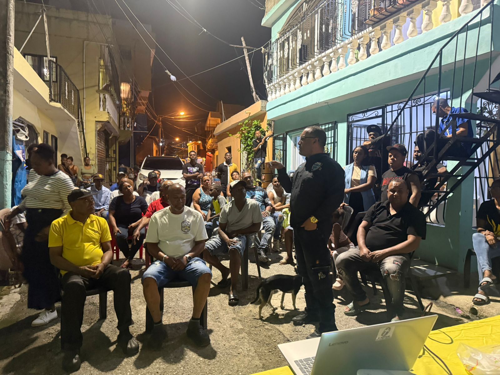 SANTO DOMINGO.- En representación del director regional Santo Domingo Norte general Miguel Ángel Peña Vázquez el comandante de la estación policial de Los Guaricanos, coronel Alfredo Rodríguez acompañó al director de la Policía Comunitaria coronel Margaro de la Cruz en una reunión comunitaria en la comunidad de La Mina.