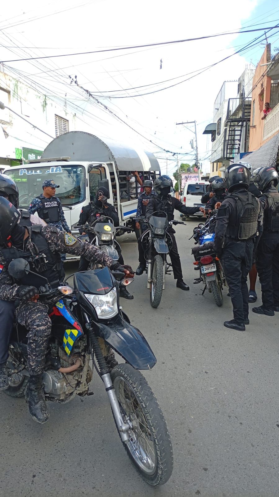 Durante el despliegue, que contó con el apoyo del Ejército de República Dominicana, fueron retenidas 24 motocicletas por distintas infracciones y se sacaron de circulación varias armas cortopunzantes.