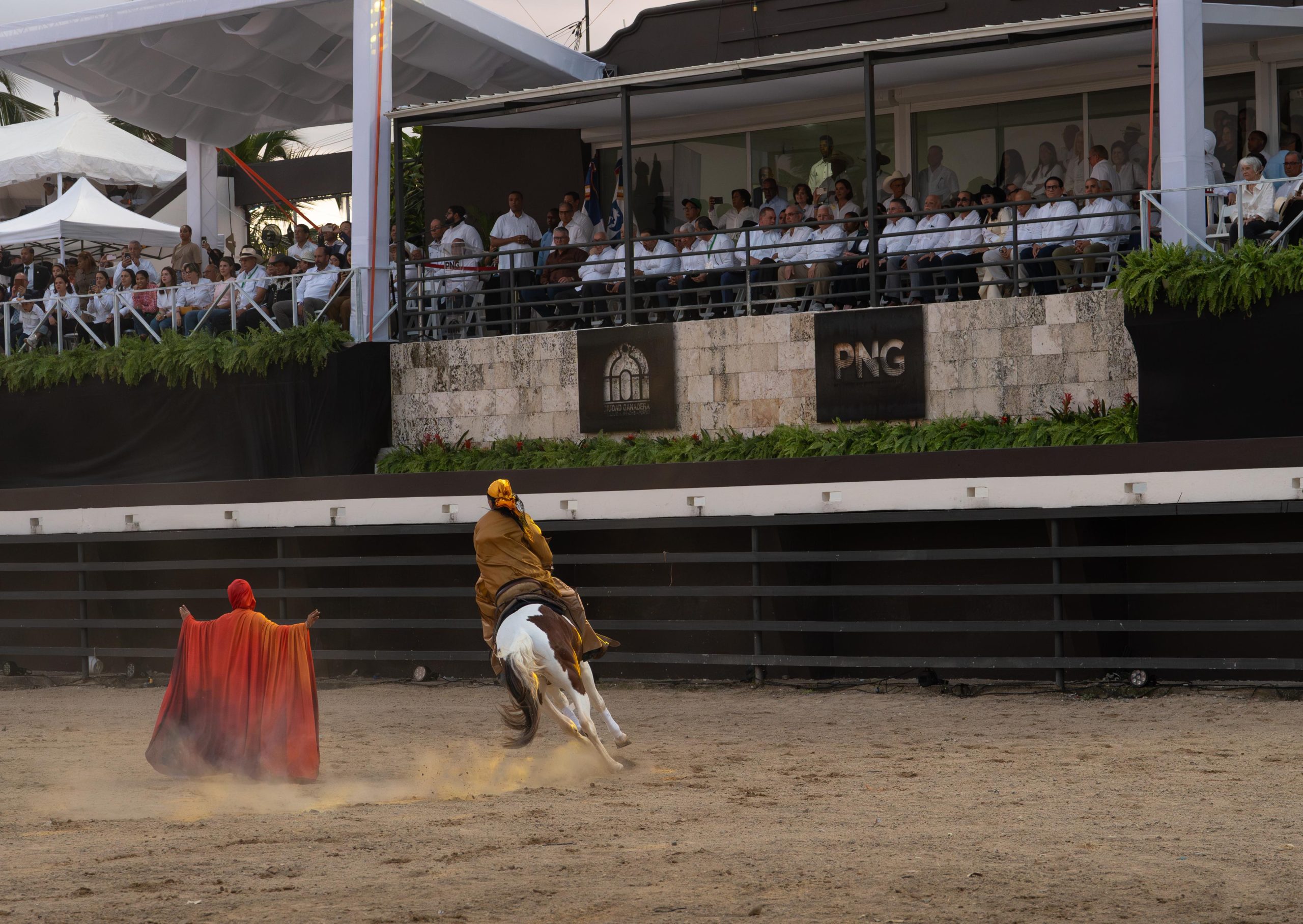 SANTO DOMINGO.- Panaca República Dominicana cautivó al público durante el acto inaugural de la Feria Agropecuaria Nacional 2026 al presentar una impactante muestra de su aclamado Travesía World Show, en un acto encabezado por el presidente de la República, Luis Abinader Corona, y el ministro de Agricultura, Francisco Oliverio Espaillat, la tarde de este jueves en la Ciudad Ganadera Julio Antonio Brache Arzeno.
