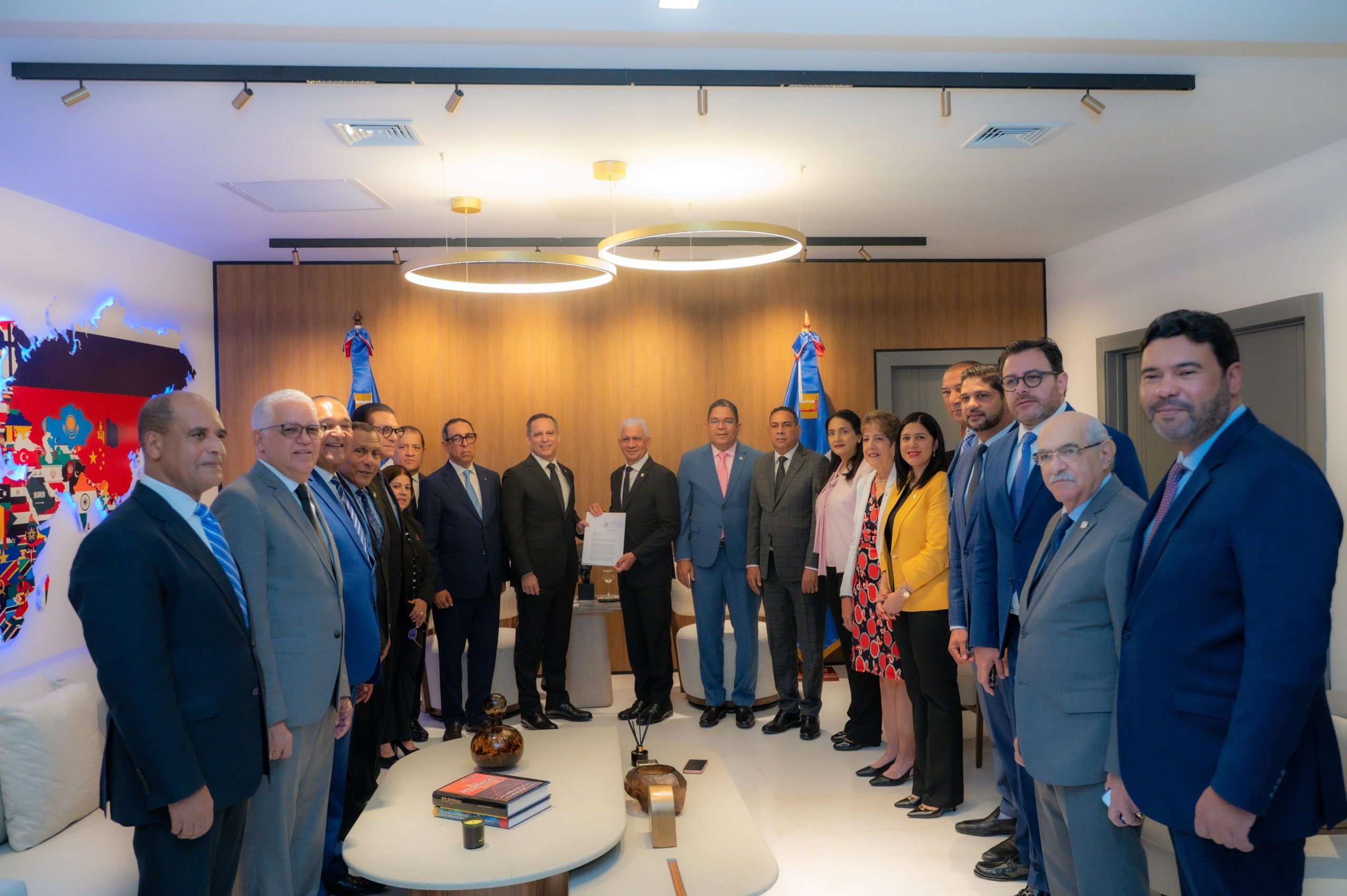SANTO DOMINGO.-El presidente del Senado, Ricardo de los Santos, recibió este martes al Pleno de la Suprema Corte de Justicia, encabezado por su presidente, Luis Henry Molina quien depositó un anteproyecto de modificación a los artículos 5, 12 y 14 de la ley que habilita y regula el uso de los medios digitales en el Poder Judicial.