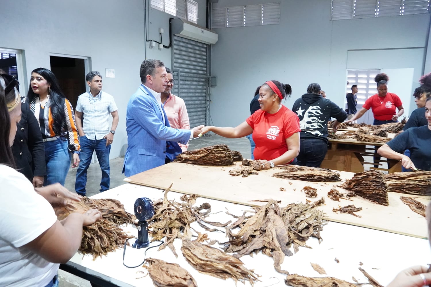 "Estamos aquí observando todo el proceso que interviene en la fabricación de cigarros de muy buena calidad. Estamos viendo que esta nave es básicamente manejada por mujeres y también cuenta con algunos colaboradores con discapacidad, como pueden observar en la parte trasera. ¿Qué pasa cuando una mujer está recibiendo su propio ingreso? Bueno, mejora su familia, porque el dinero que una mujer gana llega directamente a su hogar, a su familia y a sus hijos. Y él ha tenido la visión de promover esa inclusión de la mujer. Estamos aquí también con el director de Proindustria, quien ha estado muy preocupado por hacer que este parque funcione y vuelva a florecer como lo hacía en los años 80 y 90. Ha estado trabajando de la mano con nosotros, recuperando naves y atrayendo inversionistas a esta región. Nosotros, como centro de la isla aquí en Bonao, y por la cercanía que tenemos con puertos y aeropuertos, sabemos que contamos con un gran potencial para desarrollar este parque. Ahora estamos viendo cómo atraer más empresarios y cómo impulsar la ampliación de este parque.