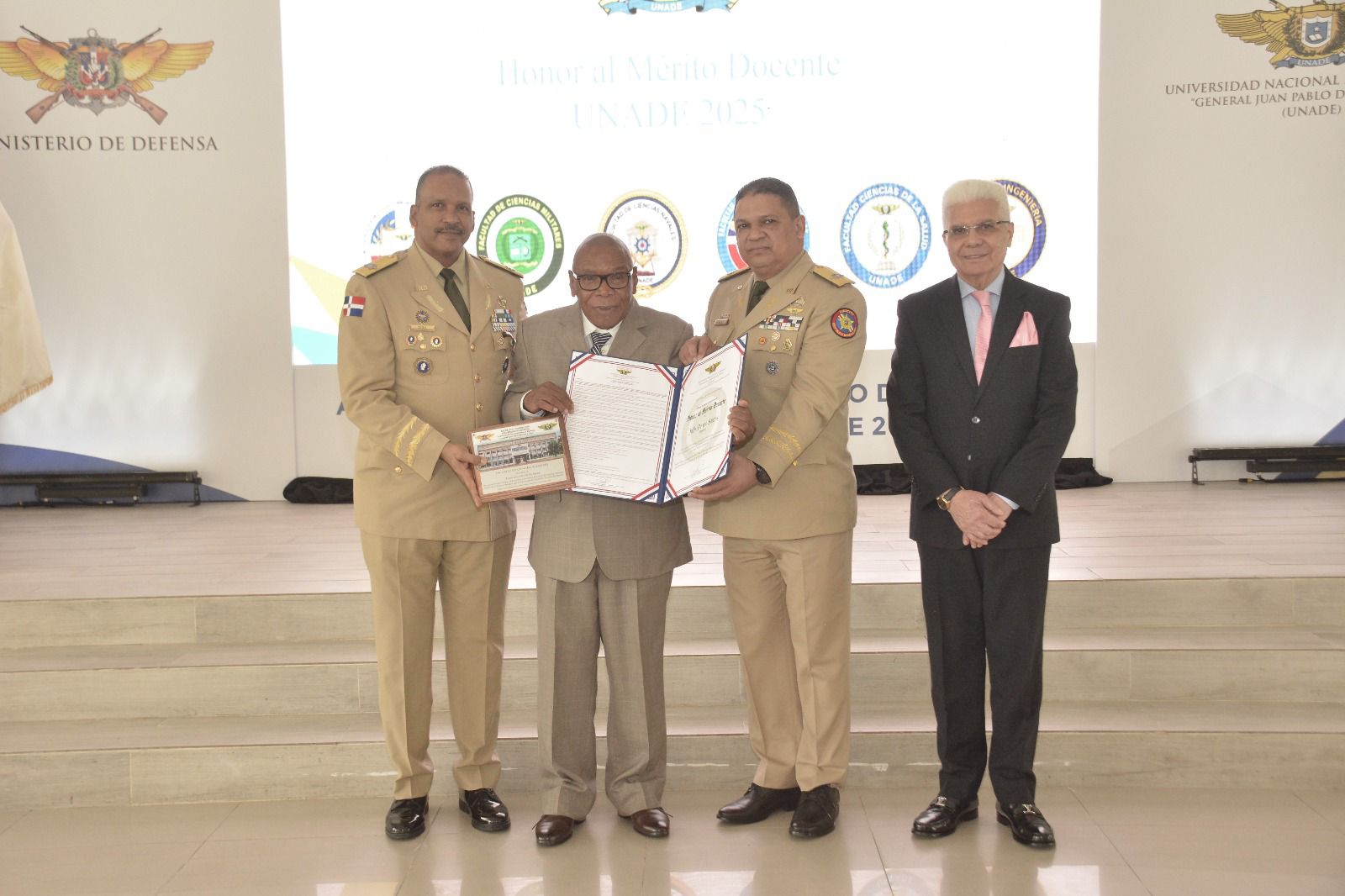 SANTO DOMINGO.- El Ministerio de Defensa y la Universidad Nacional para la Defensa “General Juan Pablo Duarte y Díez” (UNADE) celebraron el acto “Honor al Mérito Docente y Egresado Destacado UNADE 2025”, en el que se exaltó el liderazgo, la vocación de servicio y la trayectoria de quienes fortalecen la educación militar dominicana.